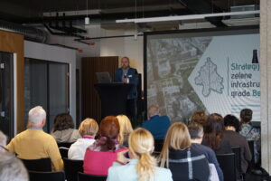 Drugi sklop je bil posvečen strategijam zelene infrastrukture mest v regiji. Predstavljeni so bili primeri Beograda, Novega Sada in Šibenika ter pomen participativnega načrtovanja pri prilagajanju na podnebne spremembe. Posebna pozornost je bila namenjena tudi urbanim toplotnim otokom in vzpostavljanju deževnih vrtov kot enemu izmed učinkovitih sonaravnih ukrepov.